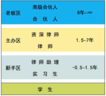 圖中-0.5年指的是,在校期間已在律所開展畢業(yè)實(shí)習(xí),并因此而進(jìn)入新手區(qū),但尚未正式計(jì)算工作年限,處于工作之前的半年中。