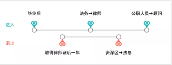 除了上述和律師職業(yè)晉升有關(guān)的話題外,法律人的職業(yè)規(guī)劃也是很多人的關(guān)注焦點(diǎn)。在此,我們也簡(jiǎn)述一下律師職業(yè)的進(jìn)入和退出機(jī)制。